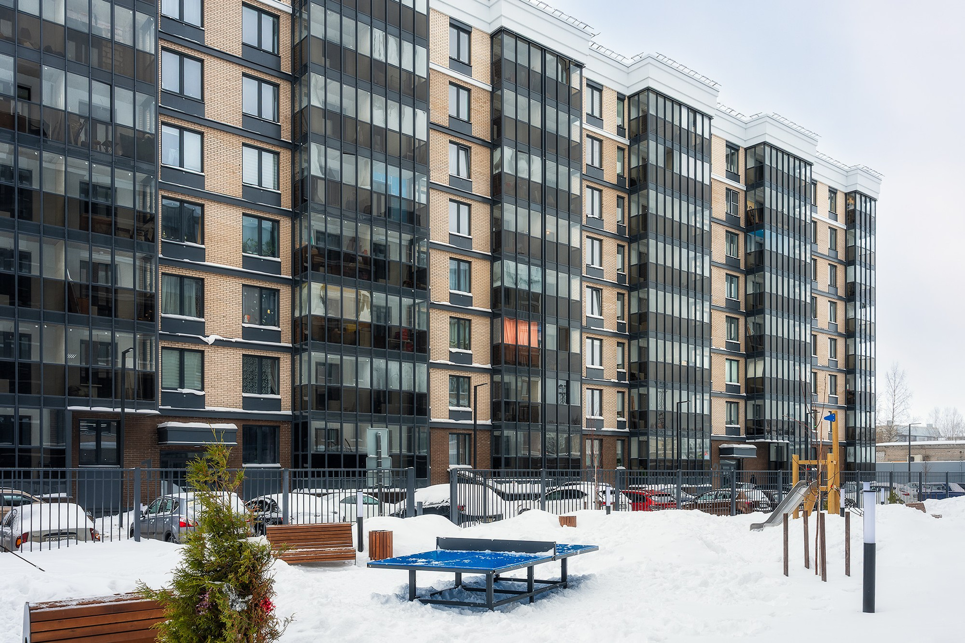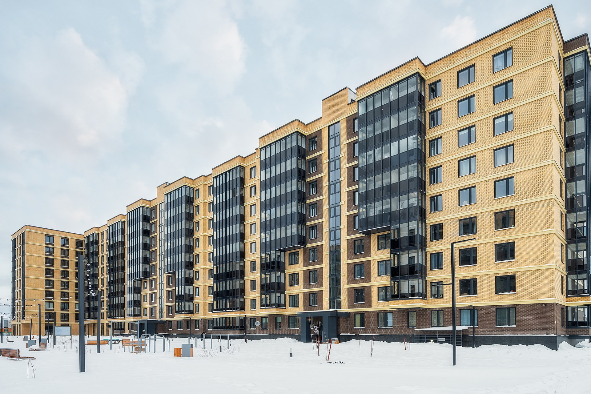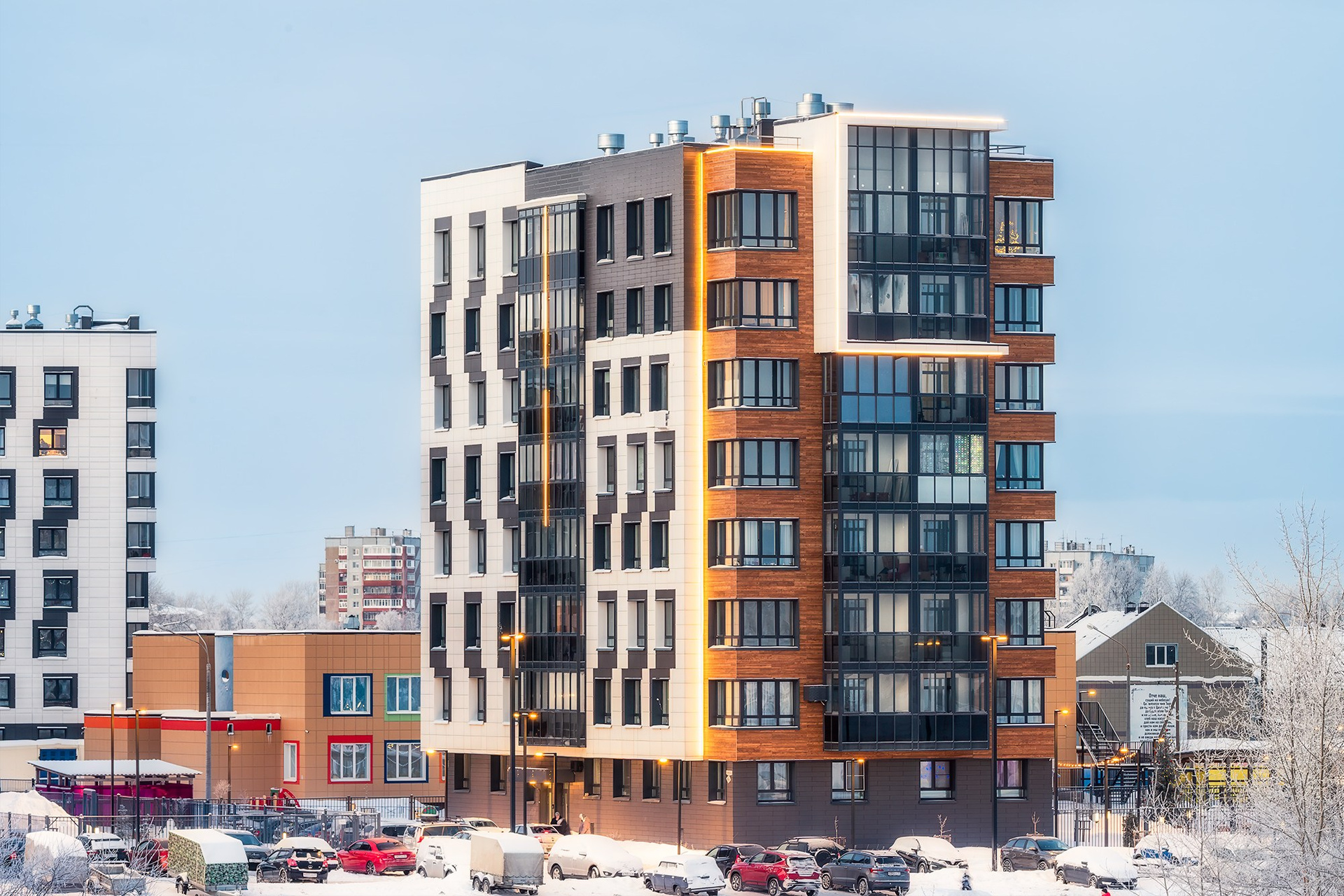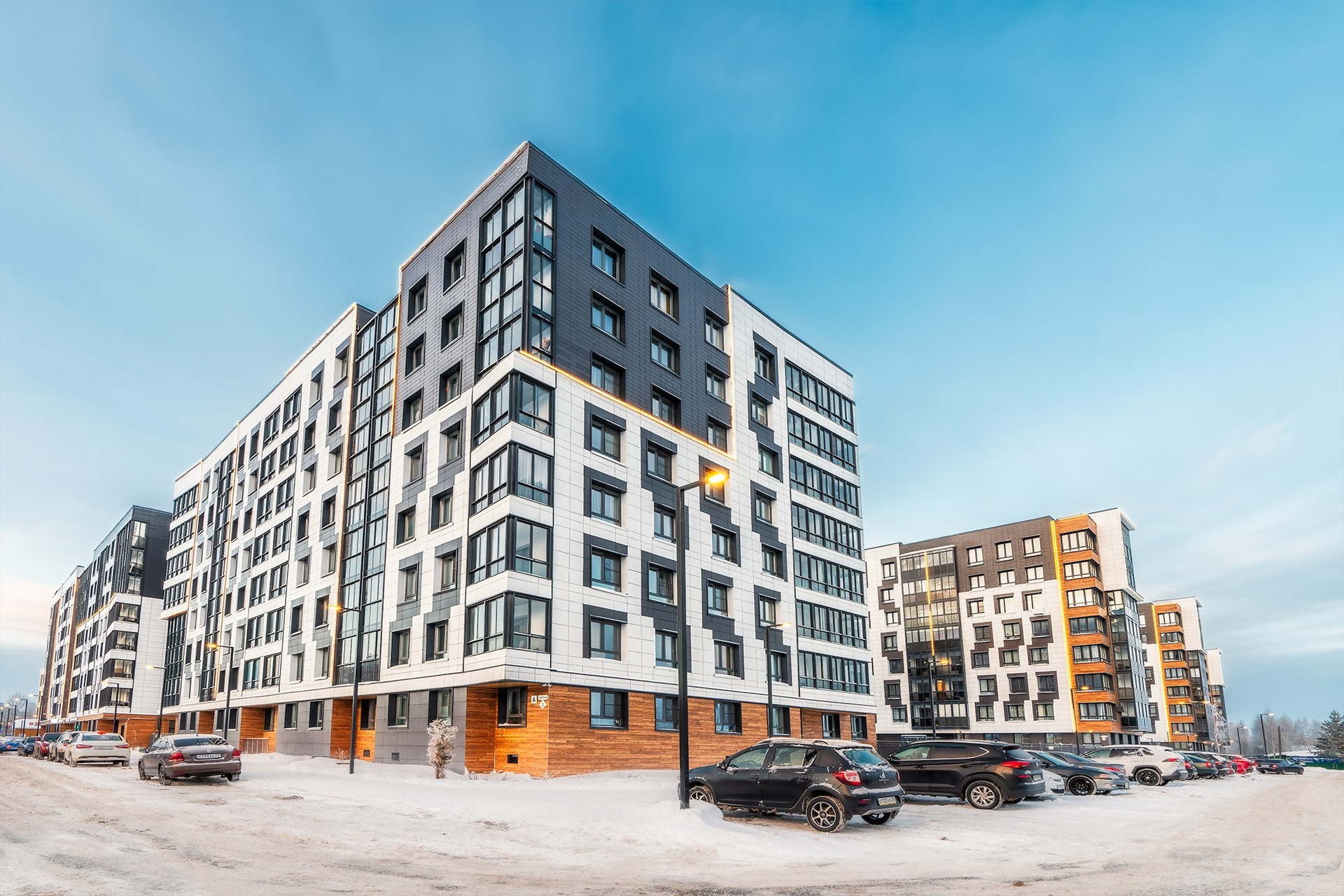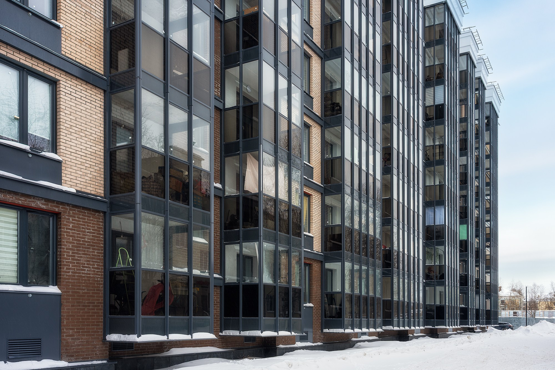 Фасад жилого комплекса	Аквилон Reka, г. Архангельск Фото для застройщика Аквилон, фотограф Александр Ермолин