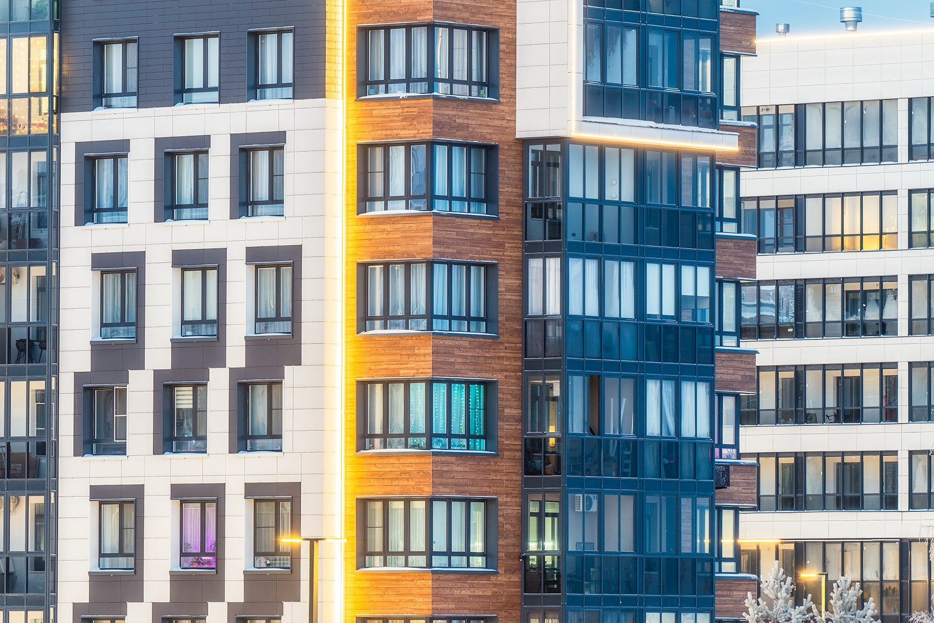Фасад многоэтажного дома жилого комплекса CITY Towers Аквилон, г. Архангельск , фотограф Александр Ермолин Архангельск